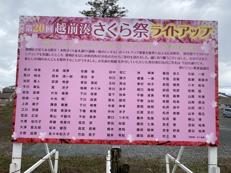 皆さん、こんにちは!ライトアップ期間中、私たちのクラウドファンディングの取り組みに際し、ご寄付いただいた方々109名のうち、掲示板でのご氏名掲載を許可いただいた83名の方々のご氏名を掲載いたしましたことをご報告いたします。