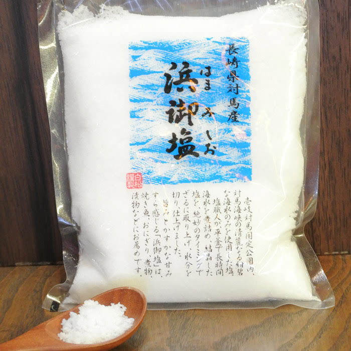 長崎県対馬の海岸は、壱岐対馬国定公園に認定され、天然の海藻が生い茂る清麗なる海水に恵まれています。「浜御塩」は、この対馬海流の海水を汲み上げ、濃縮・結晶化させて塩作りを行なっています。