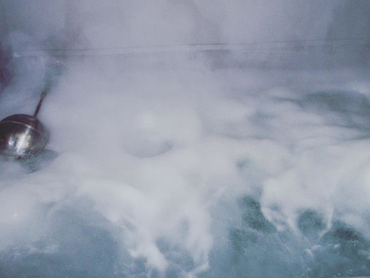 ※〜逆浸透膜〜水分のみ通す膜。海水から真水を取ったり、汚水の濾過で水分だけを取るなどで使用されている最小のウィルスも通さない膜。通常は真水を取る目的で使用されるが、塩作りではこれを通すことで水分だけを抜き、塩分濃度を高める目的で使用される。「浜御塩」の最初のこの工程で、海水の塩分濃度は3%→6%となる。
