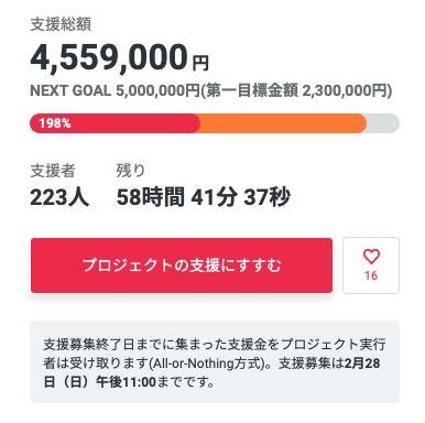 まだ最後までご支援の募集は続けておりますが、2月28日(日) 11:00を持ってこのクラウドファンディングの募集は終了し、一つの区切りとなります。