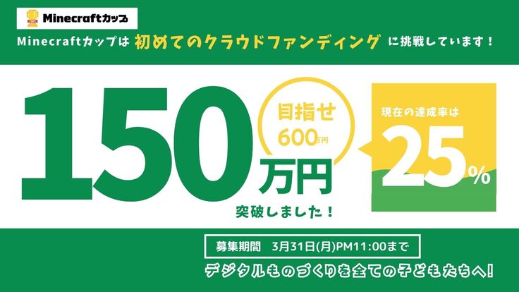 今回は初めてとなるクラウドファンディングへの挑戦の軌跡として、ご支援者の皆様とともに、次回第7回Minecraftカップのチラシのメインビジュアルを、このようなモザイクアートで作り上げる予定です!