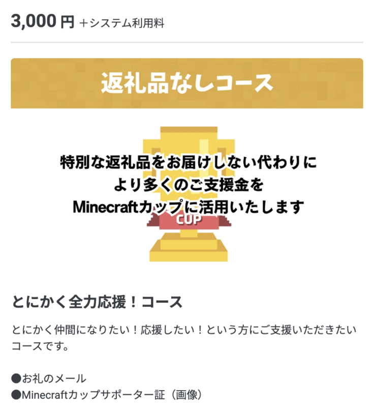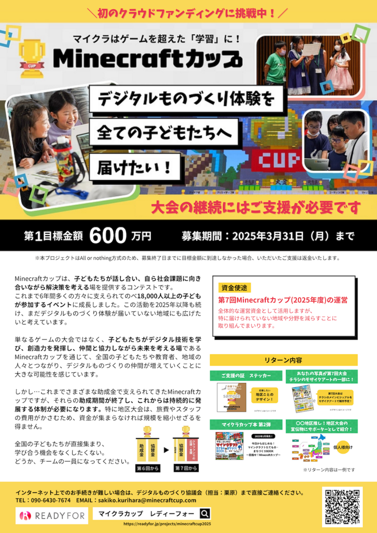 昨日の配信でもお話いたしましたが、これまでさまざまな助成金で支えられてきたMinecraftカップですが、それらの助成期間が終了し、これからは持続的に発展する体制が必要になります。