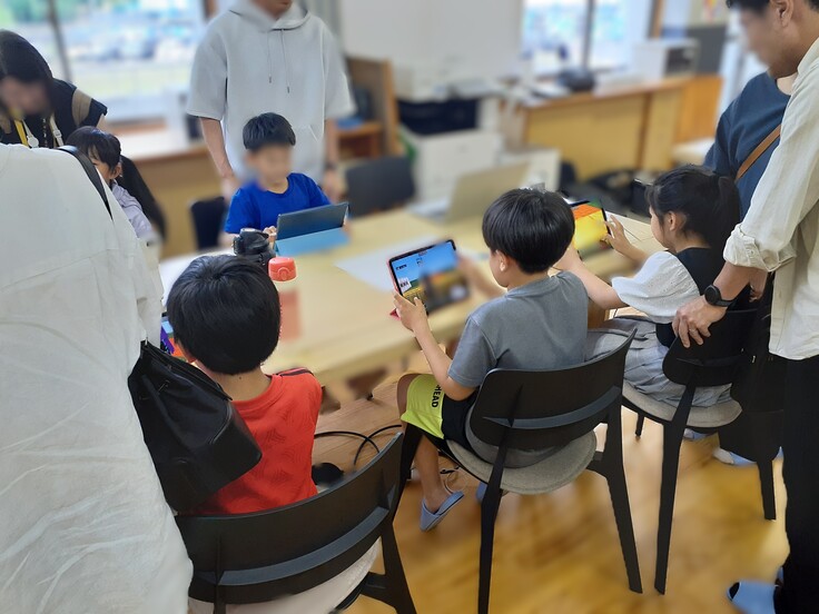 講演会の前に子どもたちを対象に、教育版マインクラフトの体験会を開催しました。キャンセル待ちが出るほどの盛況で、マインクラフトの人気の高さを改めて認識しました。子どもたちが取り組む様子を、お父さんお母さんが微笑ましく見守る姿が印象的でした。