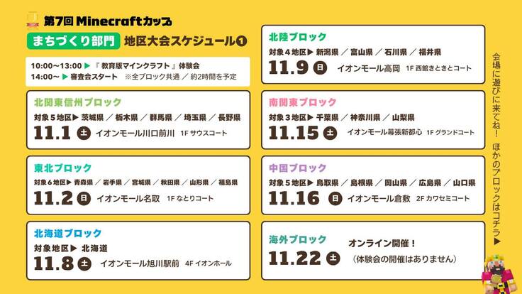 イオンモールを会場とするブロックでは、教育版マインクラフトの体験会も開催します。