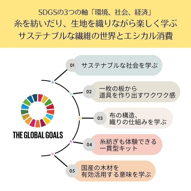 「道具作り」、「織り」という体験から、暮らしの回りにある様々なモノの原点に、触れることで、日々の「エシカル消費」や「サステナブルな未来」とはどういうことか、を感じてもらえるキットです。