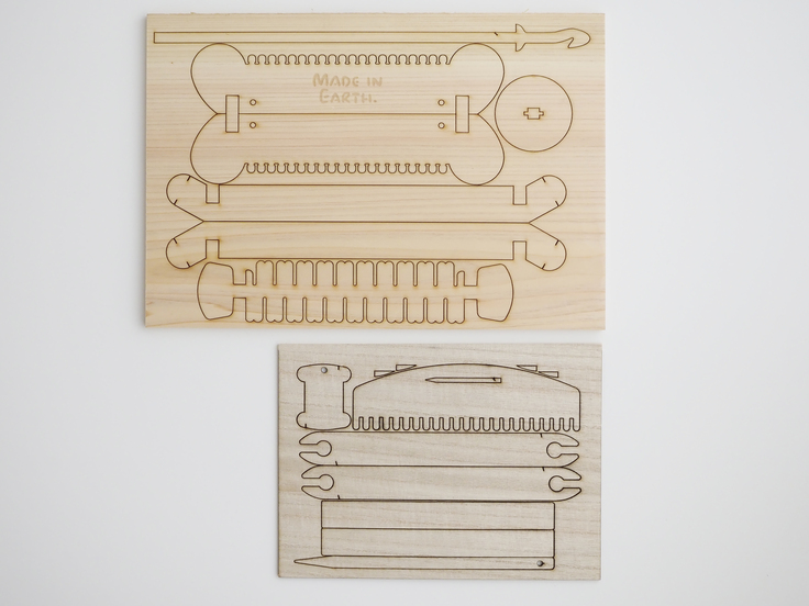 A4程度の一枚板から、プラモデルのように、部材を外してそれを組み合わせることで織り機に仕上がるという基本構造までは良かったのですが、こだわりたかった組み立てやすさを実現するまでには、板の厚さや部材の切込み加減、ほんの些細なサイズ調整など、何度も試行錯誤を繰り返しました。