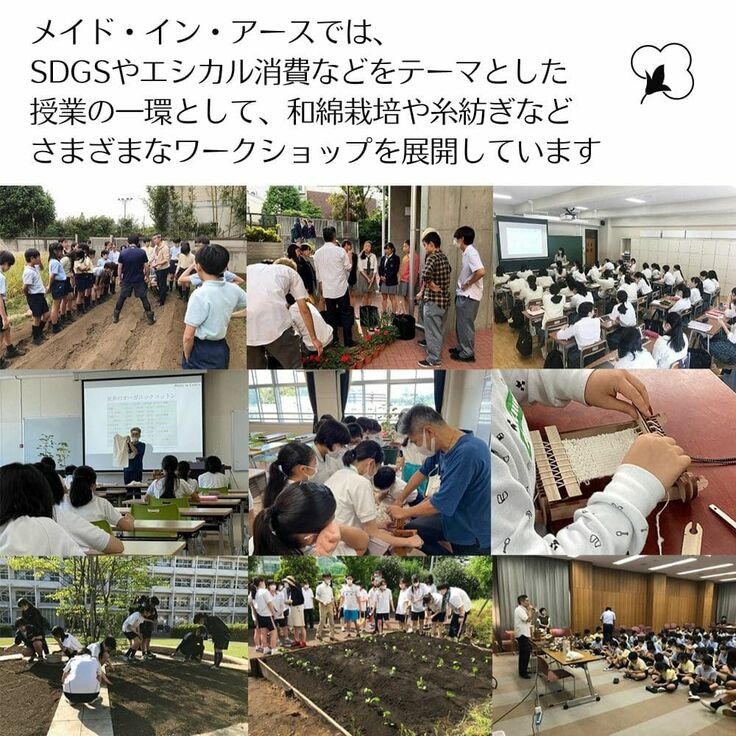 現在、すでにメイド・イン・アースSCHOOLプロジェクトとしてオーガニックコットンの栽培や現状から、世界のこと、SDGs、エシカル消費を学ぶ出前授業やワークショップを行っています。