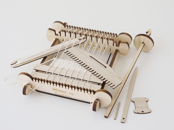 まるでプラモデルづくり!1枚板から組み立てる遊びゴコロ、学びゴコロを満たす、「糸紡ぎ」から「コースター織り」までできる織り機が完成!