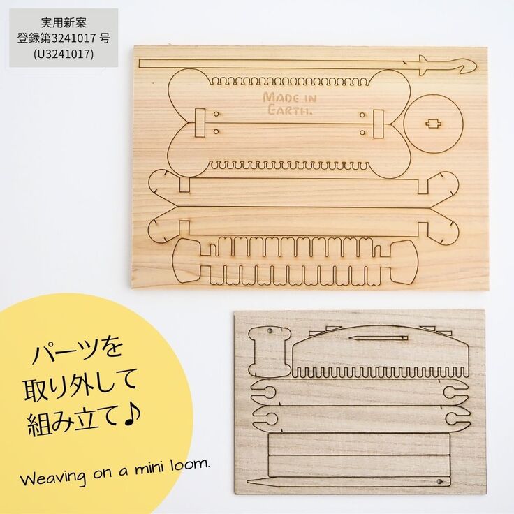 この織り機の画期的なポイントは、「間伐材など1枚の板の状態」から「織り機のパーツを外し」、ワクワクしながら織り機を組み立てて行けるところです。織りの体験の前に、「道具を作ることから始められる」経験も、魅力の一つです。