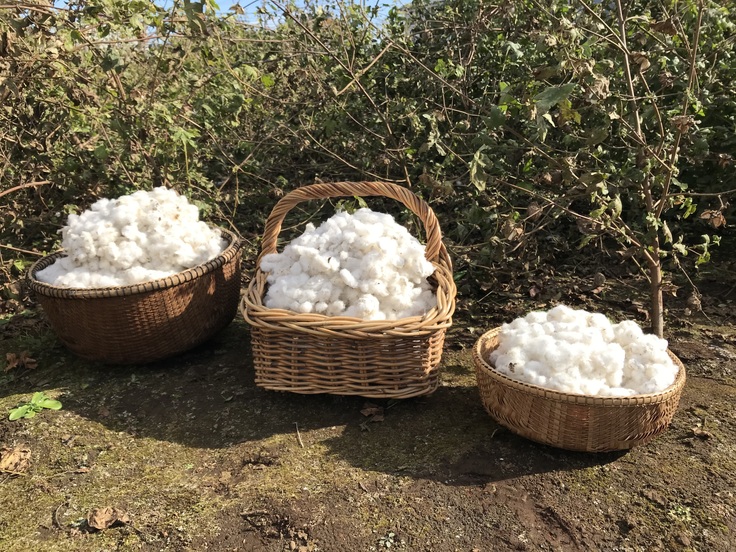 普段、私たちが普段着ている衣服などのコットン製品が、モノづくりを紐解いていくと、野菜などと同じように畑で栽培されている植物で、そこから収穫したワタの繊維をつむぎ糸となり、その糸から織りあげ布となり、その布を切ったり縫ったり染めたりすることで、手元に届いています。