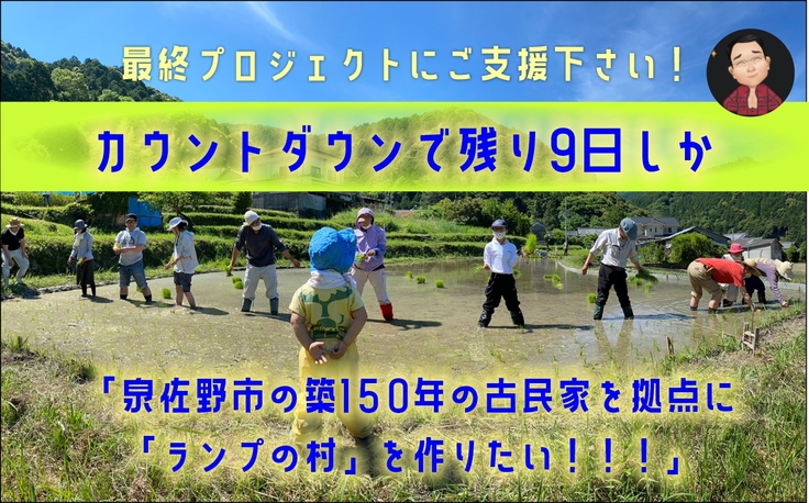 7月2日~スタートしたクラウドファンディング「泉佐野市の築150年の古民家を拠点に「ランプの村」を作りたい!!」があと10日を切り残り9日となりました。特に泉州の方、応援、お願いします!