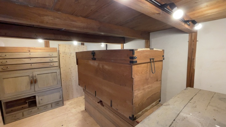 こちらが蔵の塗る前の状態ですが、長持ちという大きな収納家具がたくさんあります。