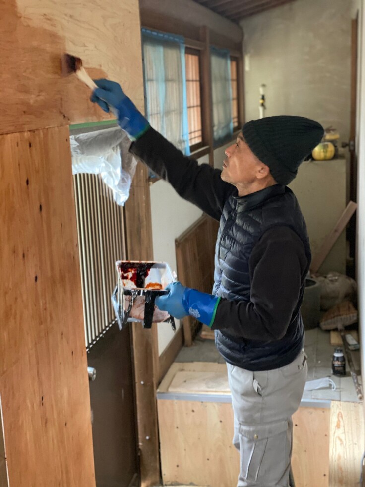 みんまち村DIYリノベ ベンガラ・柿渋塗り編