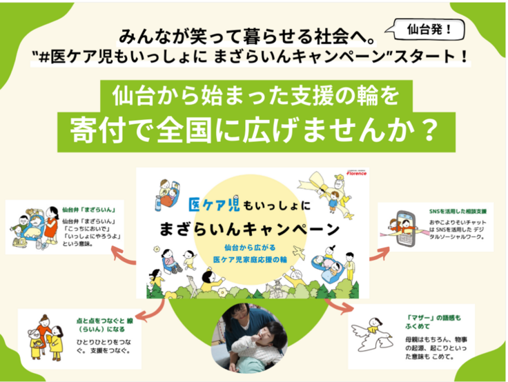 フローレンスはこの度、復興支援でゆかりのある東北の仙台市を拠点に、「#医ケア児もいっしょに まざらいんキャンペーン」を開始しました。