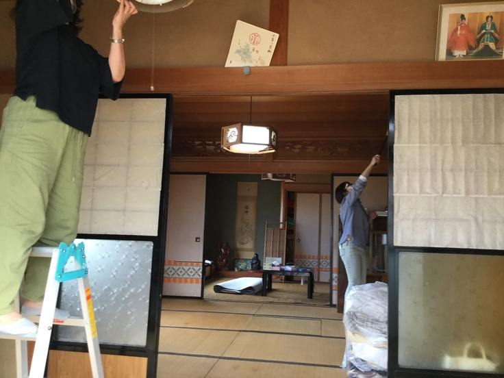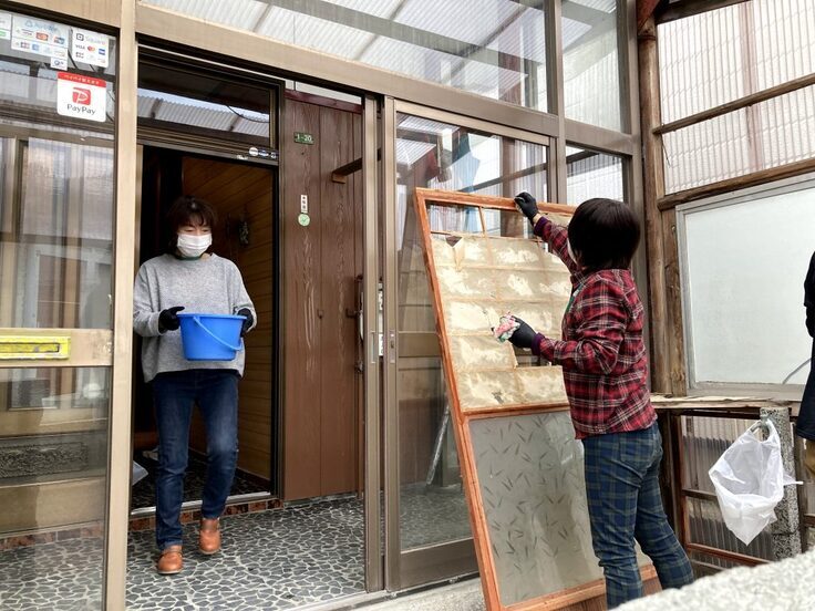 障子張りやサンルームの片づけを利用者とともに行いました。