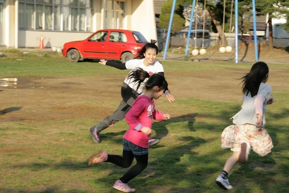 学校で授業が再開したとはいえ、多くの学校では、体育館は未だ住民の方々の避難所である上に、校庭には仮設校舎が建ち始めていました。そのため、私たちは、空いている校庭や体育館の空きスペースで、かけっこやボール遊びなどをして子どもたちと遊びました。