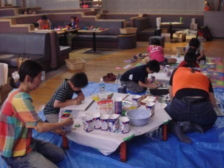 6月中旬からは、南三陸町の避難所の一角をお借りして、子どもたちの遊び場を