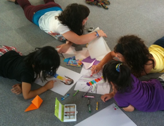 2011年9月、アメリカからさまざまな国の学校やコミュニティを訪れ、小・中・高校生たちと一緒にわずかな時間で英語による歌やダンスのショーを作り上げる活動を行っているヤングアメリカンズという団体が、東北でのミニワークショップツアーを開催しました。その際に私たちプロジェクト結が恊働した縁で、歌やダンスの上手さを活かして、ワークショップを行うアメリカ人の若者たち約13名が「みんなの場」の活動にも参加しました。