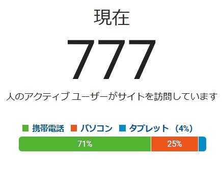 この画像は私達のWEBサイトへのアクセスが多かったある日のGoogleアナリティクスの状態です。(過去5分以内にサイトに滞在していたユーザー数がカウントされています)