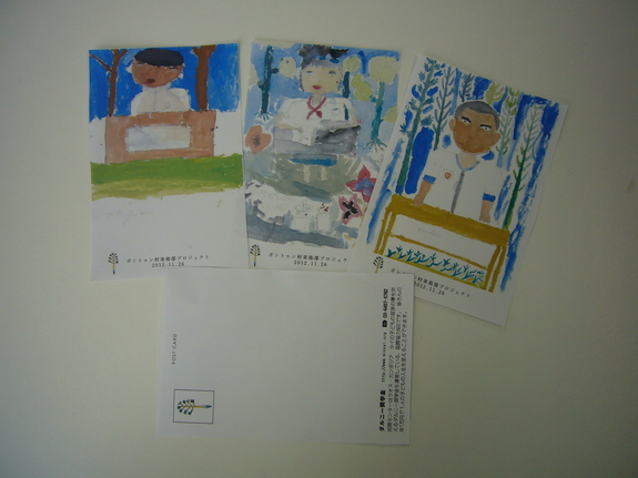 ついにポントゥン村美術部プロジェクトのポストカードが出来上がりました。日比野先生デザインのロゴも切手を貼る場所についています。クーポンを購入下さった方に、お贈りさせていただきますのでもうしばらくお待ち下さい。クーポンの発送が遅れてしまいまして、誠に申し訳ございませんでした。