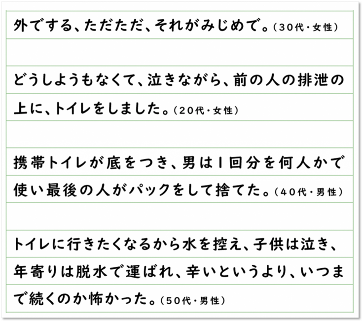 災害時のトイレ問題は、テレビで映せないぐらいに、人としての「尊厳」を傷つけます。