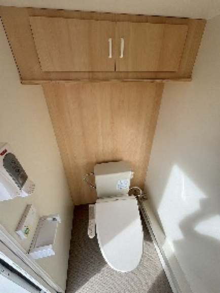 洋式の水洗トイレを備えた個室が5 室、また最後部は、電動車いすリフター、オストメイト対応設備、