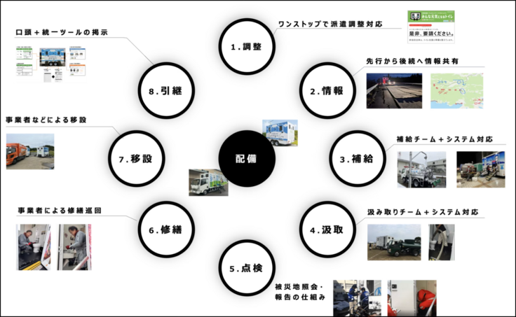 移動型トイレの配備だけではなく、支援を継続するために必要な支援プログラムを備え、仲間の自治体が全国から駆けつけます。