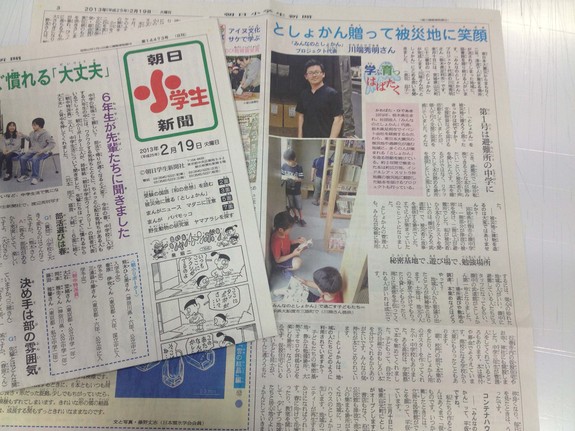 朝日新聞が全国に発行している、小学生向けの新聞である「朝日小学生新聞」さんに、みんなのとしょかんの活動が掲載されました。 山元町のとしょかん設置の事も紹介されています。 今まで活動する中で、取材して頂き、新聞で紹介して頂いたことは幾度かありましたが、子ども向けの新聞に紹介して頂いたのは初めてです。 様々な事を考える時期にある、多感な小学生の子どもたちに活動を知って頂けるのは、とても嬉しいことですね。 そのままでは伝わりづらいであろう私の言葉を、子どもたちが分かりやすい表現に変えて、書かれている記事を見ると、こういった新聞を発行される、記者さんの努力に感謝しかありません。 本当にありがとうございました。。