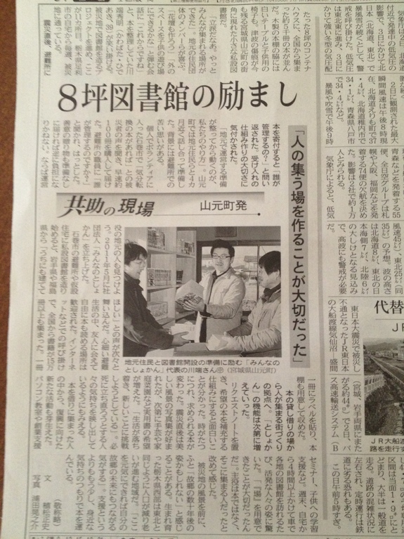 日本経済新聞の朝刊で、山元町の「みんなのとしょかん」が紹介されました。