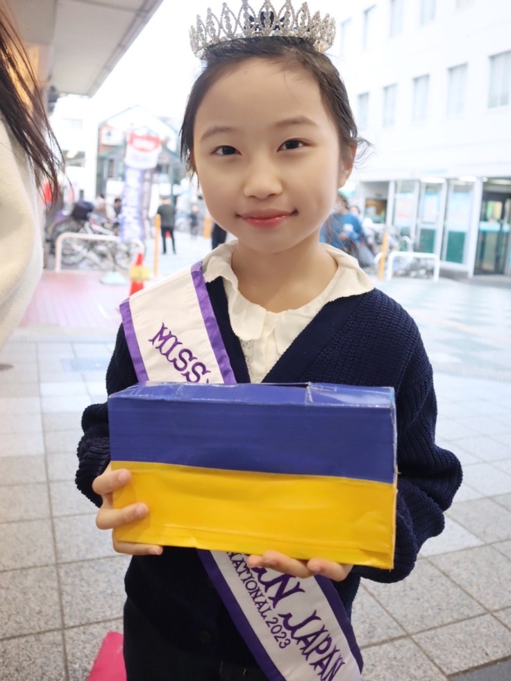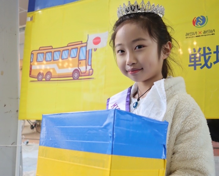 私は読書が好きで、よく図書館で本を借りて読んでいます。一方で、日本や世界には、両親を失ってしまい学校への進学に困っている子ども達や、飢えに苦しんでいる人々がいることを知り、何か少しでもお役にたてないかと考えるようになりました。そして、募金活動ならできるのではないかと考えつきました。初めに「あしなが募金」をさせていただきました。そこでボランティアをされている学生のお兄さんお姉さんと出会い、お話しをする機会ができました。本当にご両親を亡くし「あしなが募金」のおかげで学校に進学することができた、とお話ししてくださいました。私は益々この募金活動の大切さを実感しました。次に、NPOみらい事業団の「笑顔でつなぐ絵」の活動をさせていただきました。日本の子ども達の絵と世界の子ども達の絵を交換し、笑顔を繋げる活動です。私は知り合いの保育園の方々から63枚の絵を受けとりました。小さいお子さんながらウクライナの子どもたちへの思いやりが溢れる絵が描かれていました。笑顔の絵の交換によって平和の意識が人々の中で生まれたら嬉しいです。また、ウクライナの戦争で親を亡くした子どもたちへの募金活動もさせていただいています。私は募金活動が好きです。募金をしていただく方々はみなさんとても温かい思いやりの心を持っておられます。私はその方々と募金という形で交流させていただき、人の真心を直接受け取りました。私はこの募金活動を日本中に広めたいです。また、絵の活動も広めたいです。そう思い、私は関西でNPOみらいこども事業団を設立することを決めました。沢山の方々の助けをいただき、設立までこじつけました。私はこのNPOみらいこども事業団でもっと平和活動・人権活動を広めていきます。これからも活動を続けていきます。皆さまのご支援をいただけたら嬉しいです。