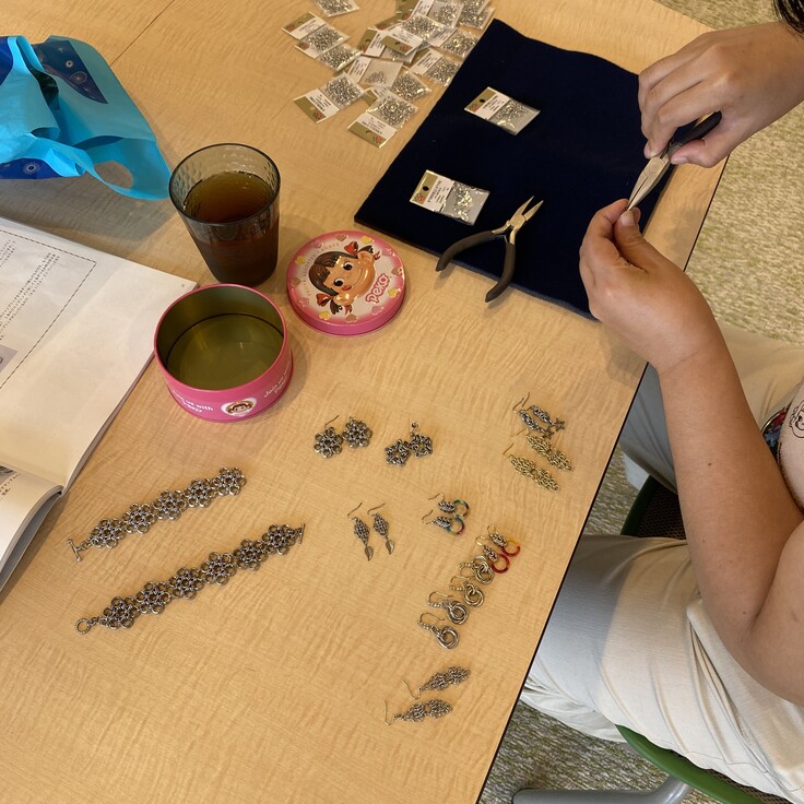 現在、当事業所の利用者さんに行っていただいている作業内容は箱折り、お菓子詰め・チェーンメイルジュエリー作成・改良めだかの飼育及び販売などです。また利用者さんとスタッフでさまざまなイベント(お出かけ、パーティー等)を行い、楽しく就労支援を進めています。今後、新たな事にも挑戦して利用者さんの未来へのジャンプを支援して行こうと活動しています。