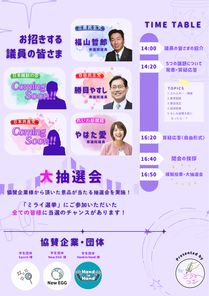 今回のミライ選挙は、若者をはじめ、幅広い世代の皆様にご参加いただけるイベントです。この活動報告をご覧いただいた皆様も、ぜひご参加いただければ幸いです。