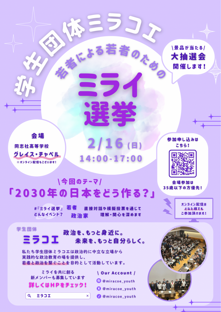 ミライ選挙の「大抽選会」開催のため資金協賛・物品協賛を募集してます