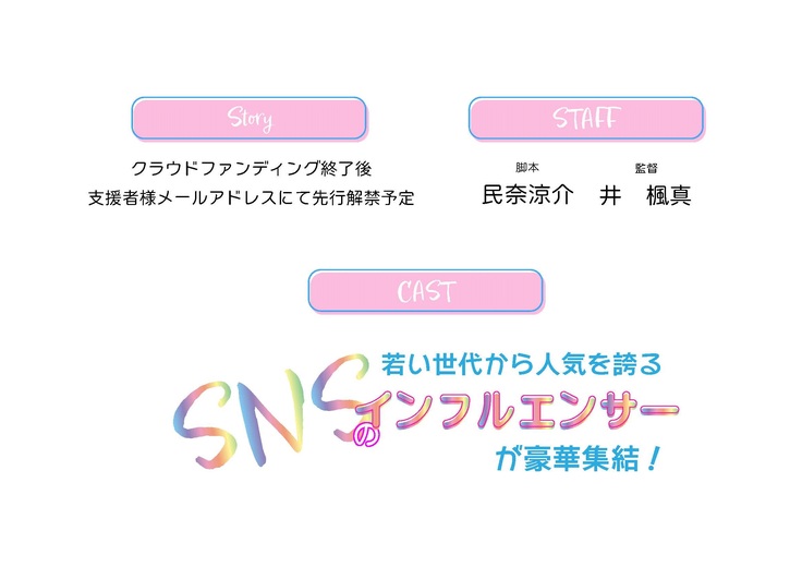※ グッズプレゼント、エンドロールの記載に関しましては、記載頂いたメールアドレスにて、別途ご連絡致します。