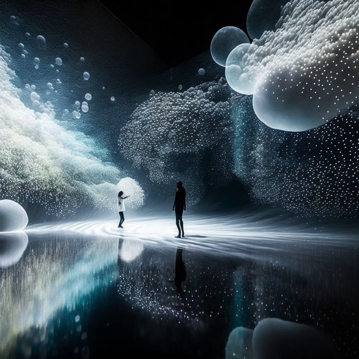 海洋ゴミ問題や、マイクロプラスチック問題を、デジタルアートでパーティクル(粒子)で表現し、映像美としてアート表現する。
