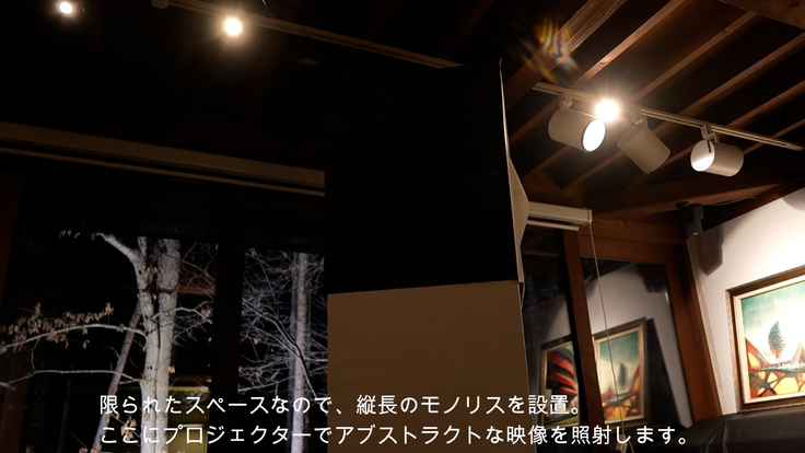 室内では、高さ2メートルほどのモノリスに映し出される映像作品を通じて、環境問題に光を当てます。