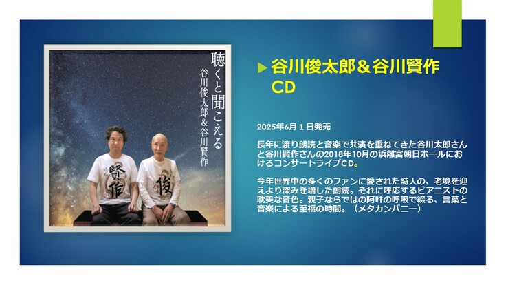 リターンに谷川賢作さん俊太郎さんのライブCD(新譜)が加わりました。