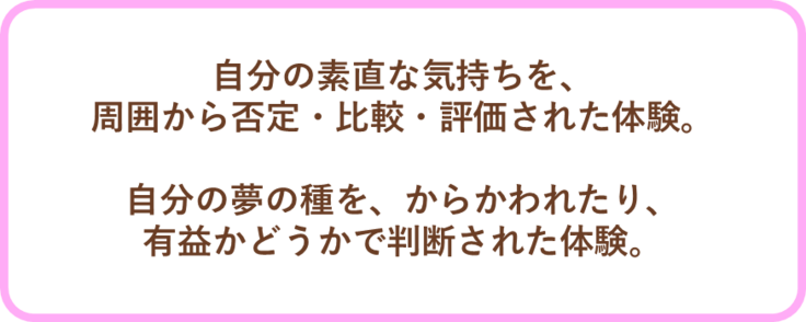 そうした小さな体験1つ1つの積み重ねによって、いつしか自信が持てなくなり、自分の気持ちにフタをすることが当たり前になってしまったのではないでしょうか。