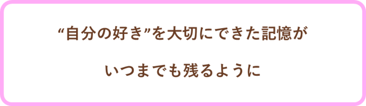 「個」から「集団」を意識する時期だからこそ、「自分の好き」を大切にしながらも、「世界とつながることができる」というメッセージを伝えたいと考えています。