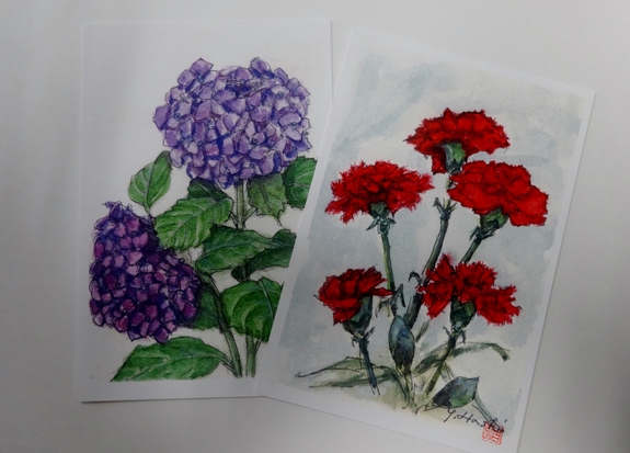 四季折々の草花を描いたハガキ大のカードで、額に入れて飾っても楽しめる物です。