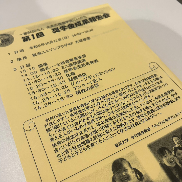 本日、新潟市のユニゾンプラザにて「第一回奨学金成果報告会」が行われました。