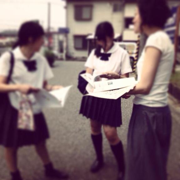 道ゆく高校生に、チラシとみらいずBOOKを配ったり、