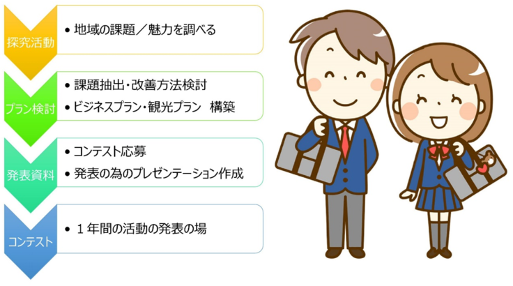 現在、私たち未来創成学院は複数の学校の探究活動のお手伝いをしていますが、今回の挑戦では、高校の枠を超えて10人程度の高校生と地域を舞台にした探究活動を進めていきたいと思います。まずは地域の実情に触れ、そこから抽出した課題をビジネスプランや観光プランに昇華させて、全国大会を目指してコンテストに応募します。