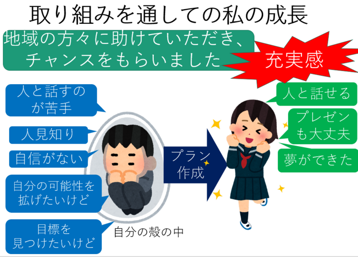 ・目標がなく毎日を漠然と生活していた生徒が、地域貢献したいと志を立てました。