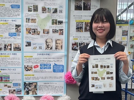 ~昨年みなさんから頂いたクラウドファンディングの支援金で子どもたちがこんなに花開いています~ 昨年未来創成学院の探究講座受講生であった三宅茉莉さんから感謝メッセージを頂きましたので、こちらで紹介させて頂きます。三宅茉莉さんは大河ドラマの流れに乗って井原市をメジャーにしようと地域のゆかりの場所を訪ね、集めた情報をパンフレットにまとめました。パンフレットを掲示してくれる場所も増えていきました。地域の方々からの応援も受けることができ、井原市の活性化を目指す活動を自主的に行っている高校生として表彰もされました。