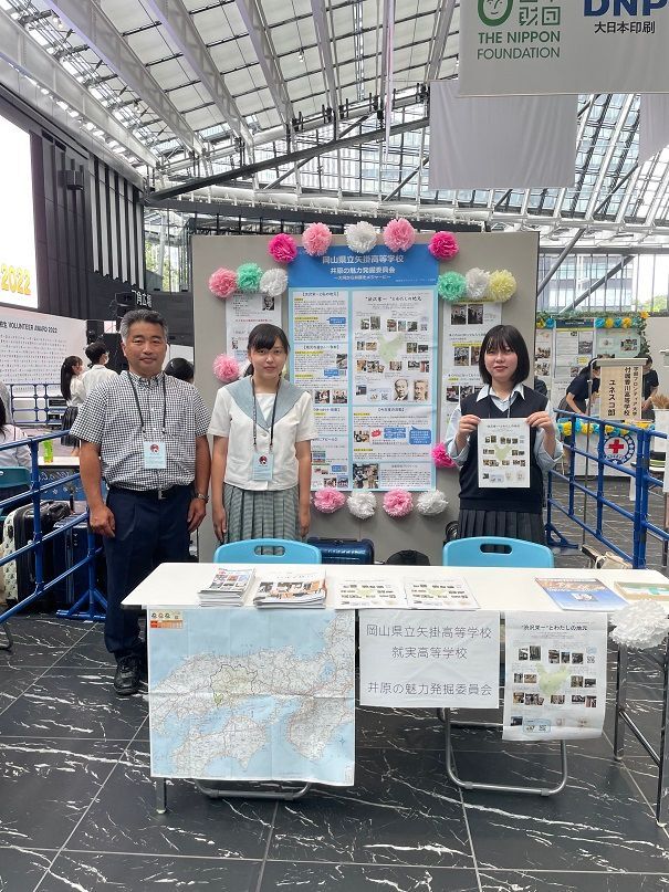 全国から98チームが学校や活動分野の垣根を越えて交流し、お互いの活動の理解を深めました。実に3年ぶりのリアル開催で、シンポジウムでも自分の意見を積極的に発言する高校生、ブースで一生懸命説明してくれる高校生・・参加した高校生の熱量がとても大きく感じられました。昨年のNHK大河ドラマで渋沢栄一氏が取り上げられたことを機に地元の井原市を盛り上げようとしている姿は、探究活動を通して大きく成長していると感じられました。
