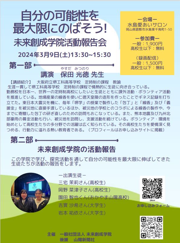 一般社団法人 未来創成学院では、今年で5回目となります活動報告会を開催します。