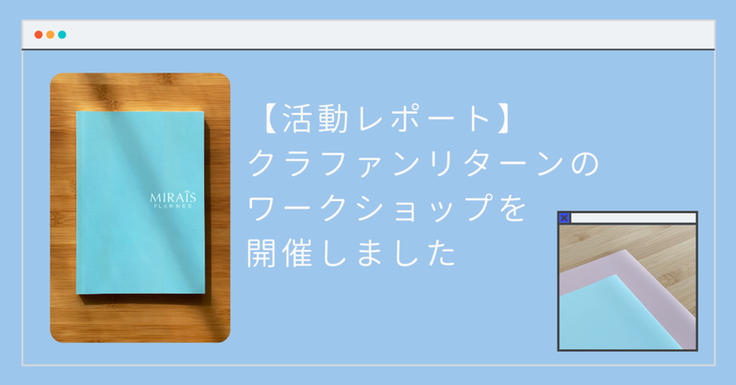 3月にクラウドファンディング(クラファン)でイベント参加券付きリターンをご支援いただいた方へのワークショップを開催しました!