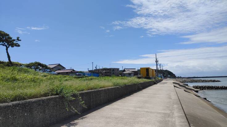 愛知県知多郡美浜町野間海岸に、海沿いの道から大きな木までの広い土地(約230坪)とご縁をいただきました。隣にはテレビ番組「ぐっさん家」のグッドザサンハウス(黄色のコンテナ)があります。この海を一望できる土地に、障がい者が余暇を楽しめるショートステイを建設します。