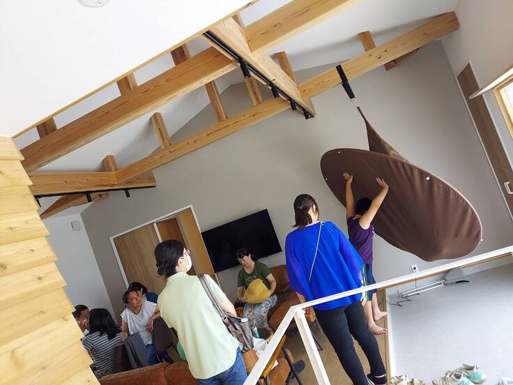 先日内覧会をやった時はこのハンモックが大人気で早速壁にハンモックがぶつかりまくり